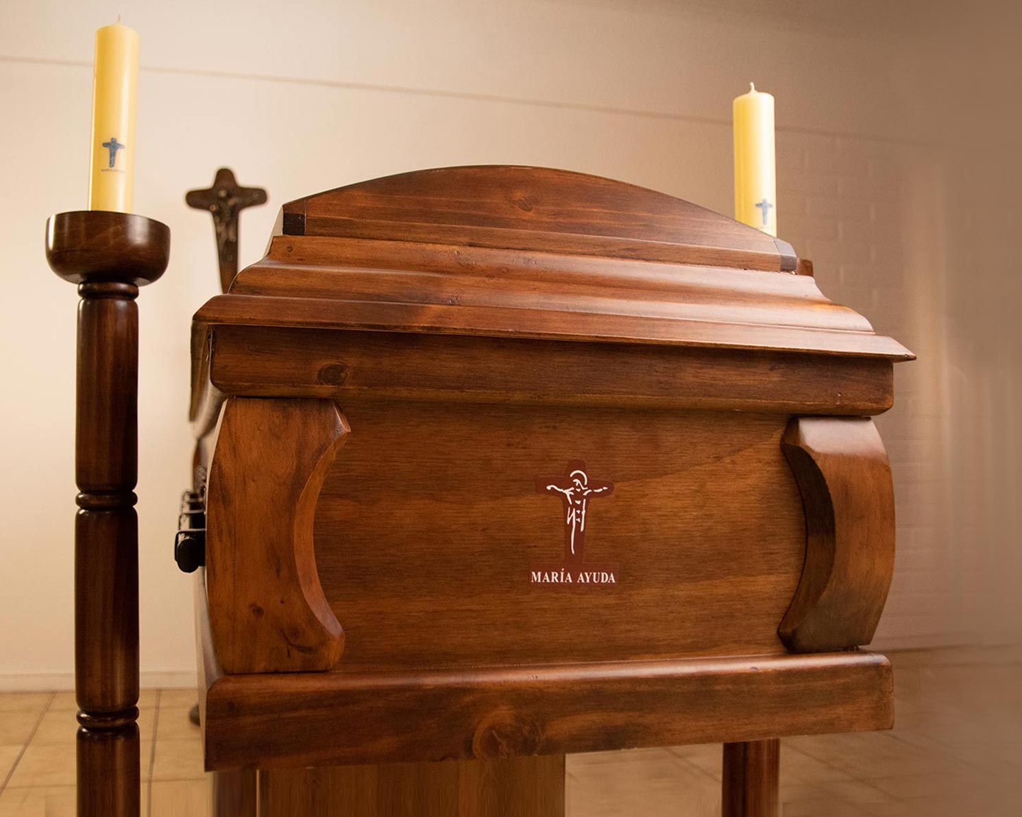 • Capilla Ardiente Madera con 2 Porta Cirios, Cruz Sencilla de la Unidad.
