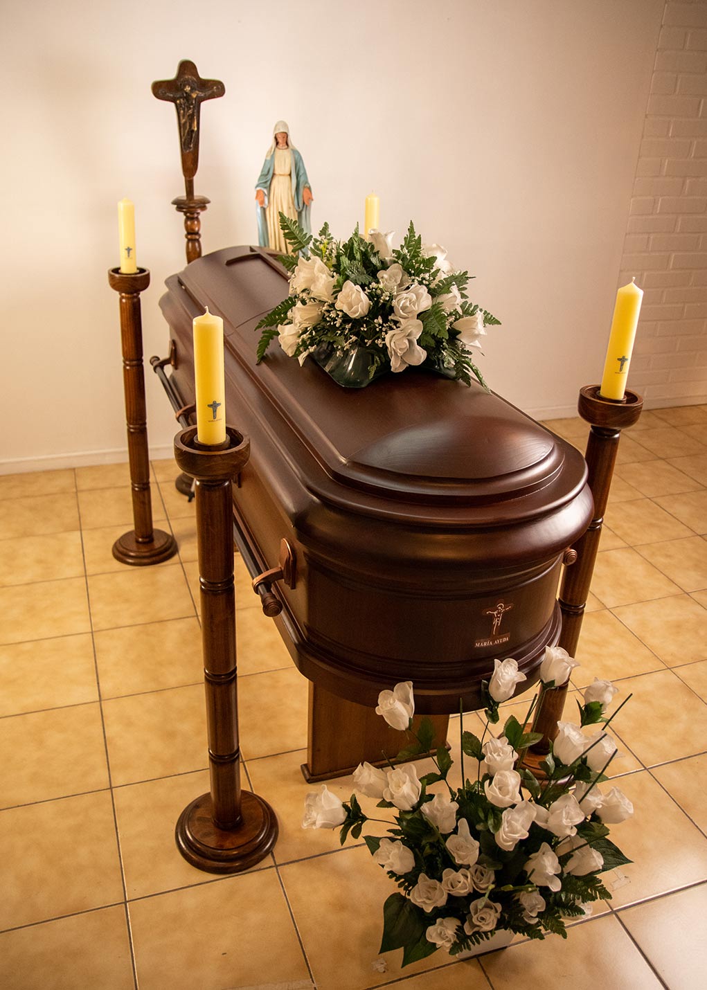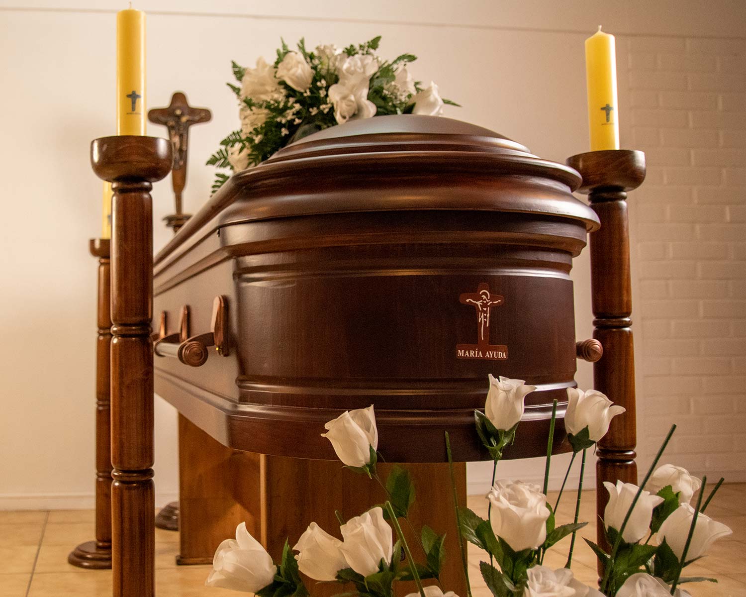 • Capilla Ardiente Madera con 4 Porta Cirios, Cruz Sencilla de la Unidad.